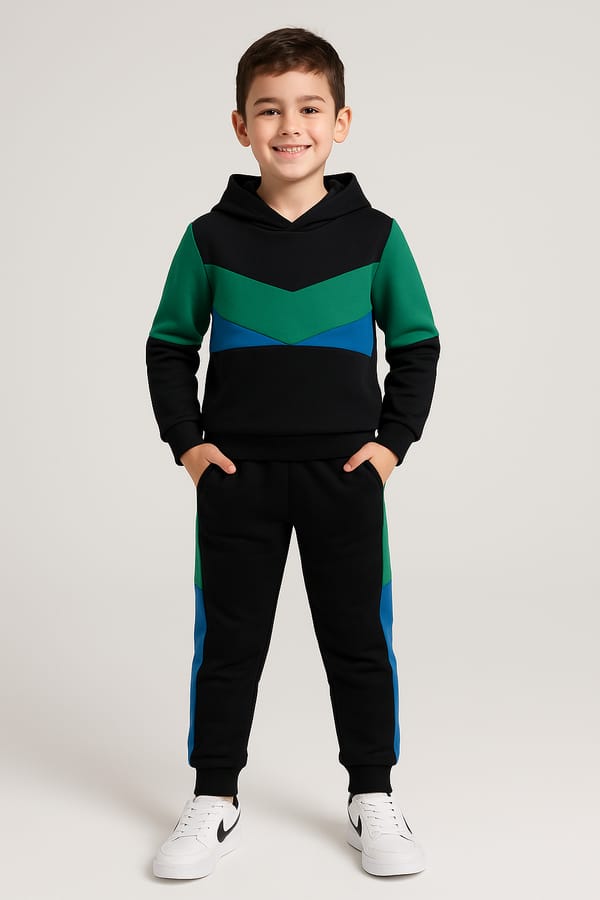 Made from soft, breathable, and stretchy fabric, the track suit keeps little ones comfortable whether they’re running, jumping, exploring, or relaxing at home. The matching jacket and joggers offer a flexible fit with durable stitching—perfect for active days and growing bodies.